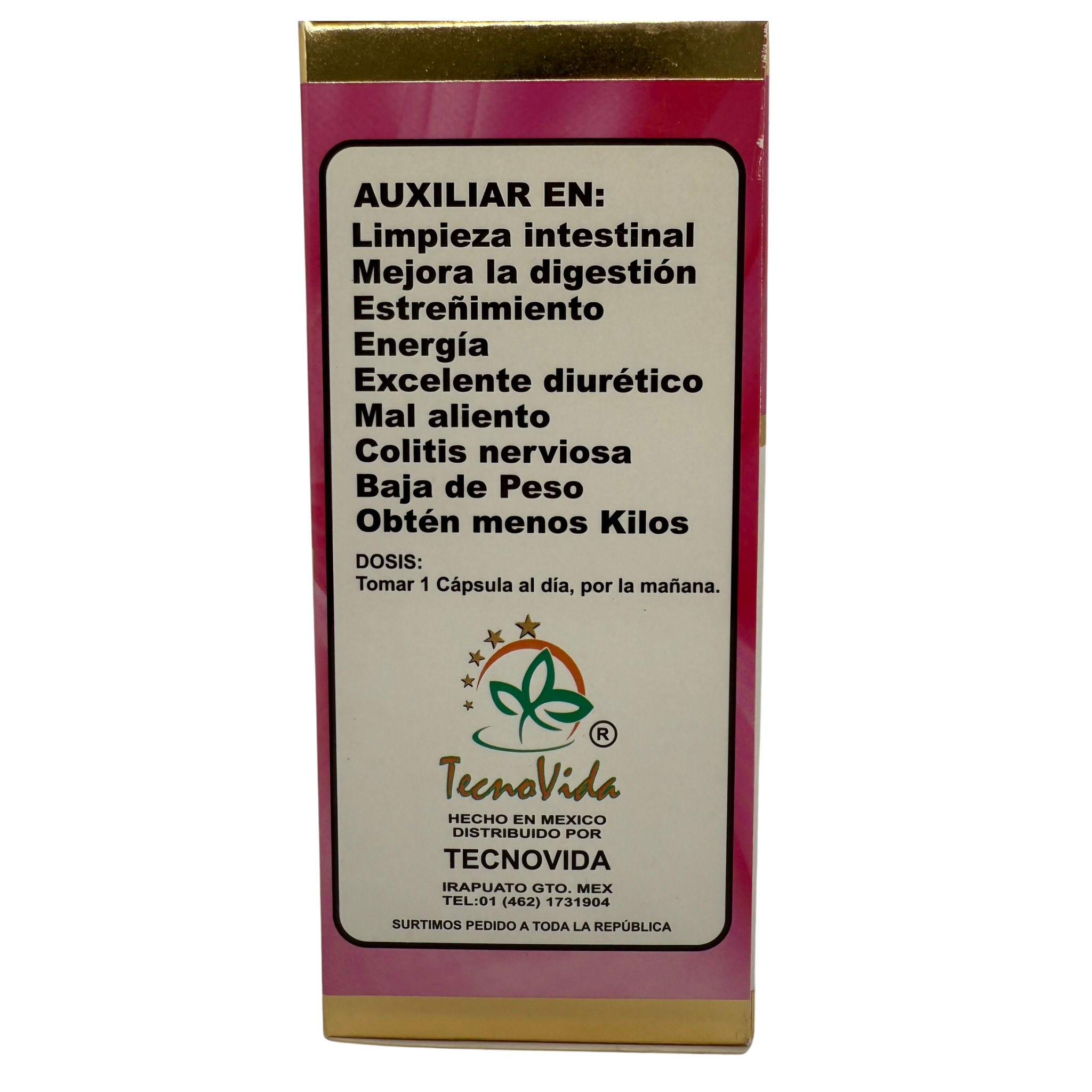 Es un suplemento alimenticio formulado con ingredientes naturales para apoyar una digestión saludable, activar el metabolismo, ayudar en la pérdida de peso y aumentar los niveles de energía en adultos.